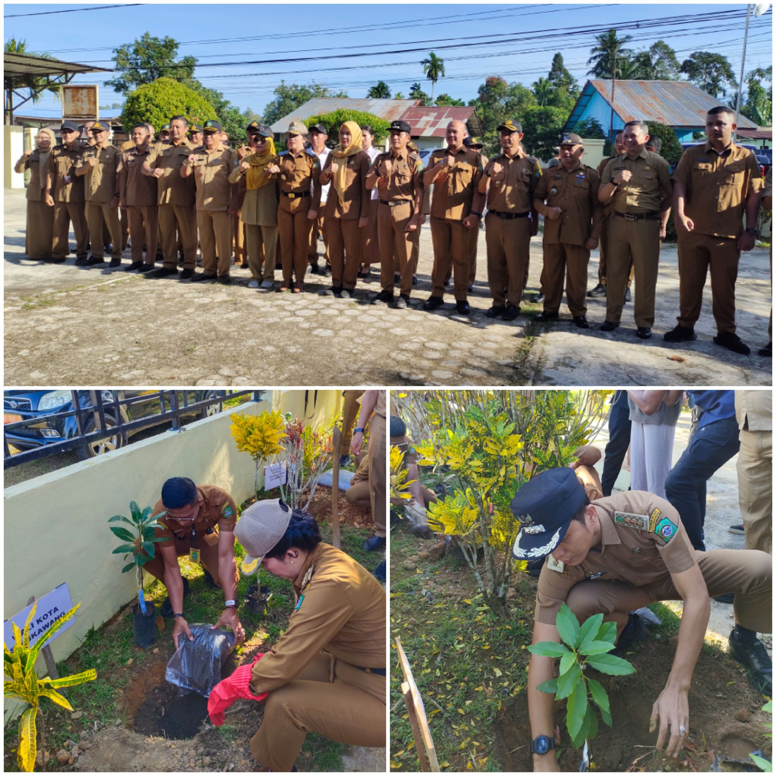 Seusai apel, Wali Kota Singkawang bersama jajaran OPD turut melakukan penanaman pohon di sekitar kantor Kelurahan Nyarumkop.